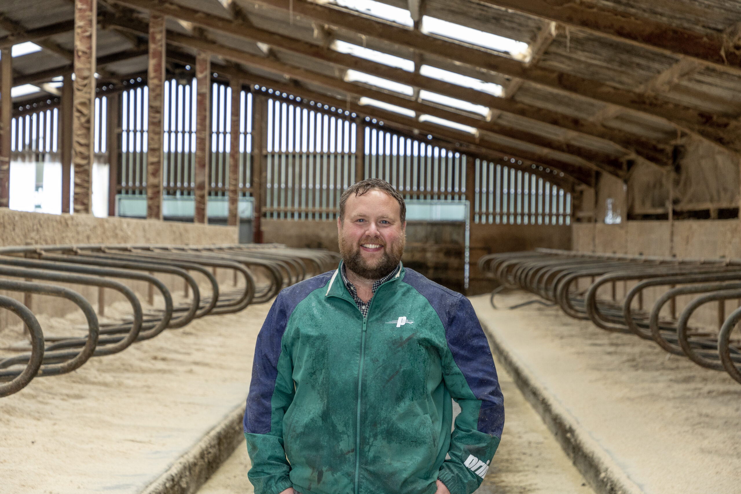 “I’m looking forwards for a start, so this is really easy to see,” he says. “As I drive forward through the cubicles, I can sweep the edges, then when reversing out, I can dispense sawdust using the hydraulic spools for the belt drive. So whichever way I travel through a cubicle shed, I’m using both ends of the tractor. The visibility is great and the productivity is impressive, and I don’t have to worry about windows getting covered in dust.”